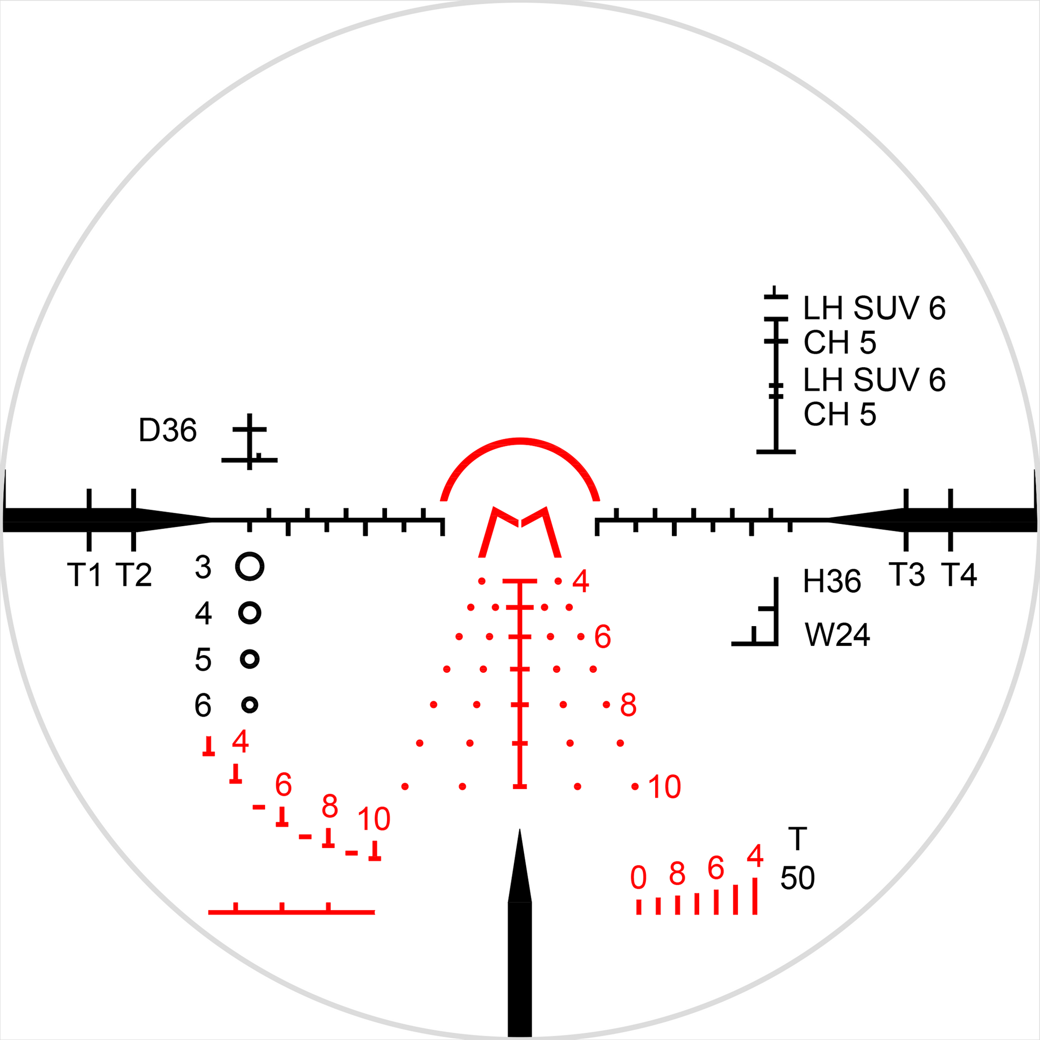 Math-Free Ranging: Unlike conventional systems requiring complex calculations or laser hardware, the HSS reticle enables instantaneous distance measurement through intuitive visual reference points. This allows shooters to range targets without pausing for computations.